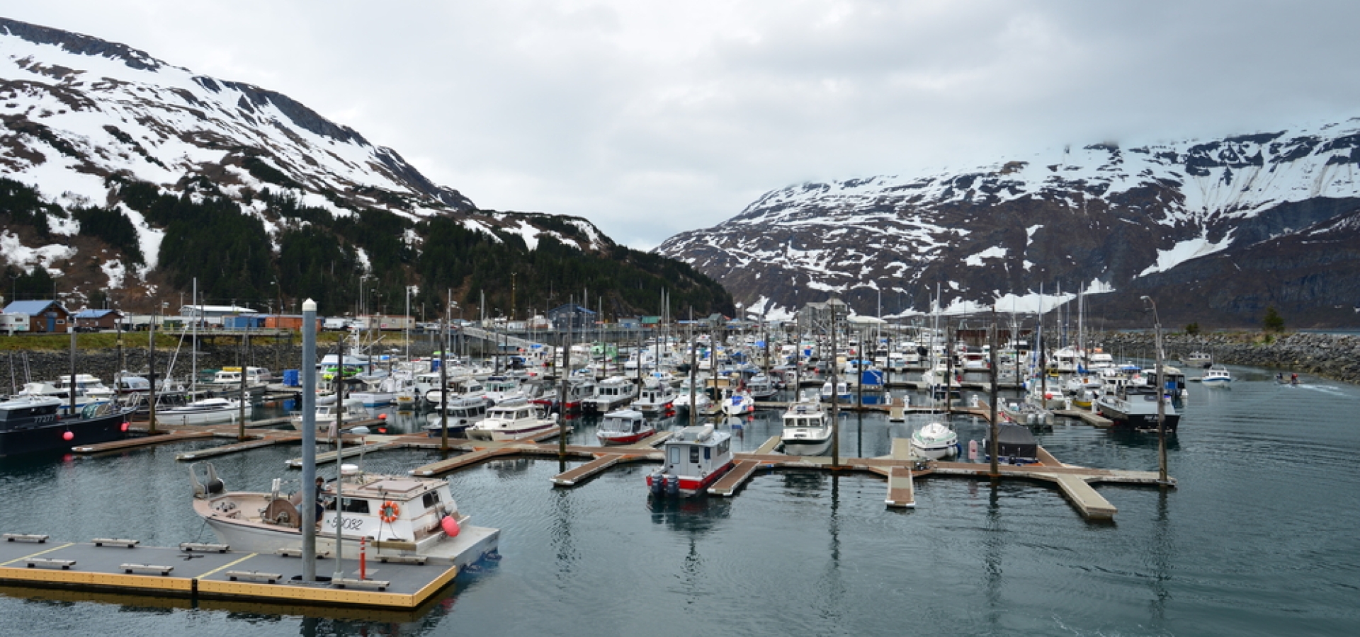 The small city of Whittier is located in the Kenai Peninsula Borough on Prince William Sound in southeast Alaska, situated at the head of Passage Canal across from the Chugach Mountains. Originally built as a harbor community to support a highway tunnel that connects the city to Anchorage, Whittier is known for its diverse wildlife in the surrounding bay and at the impressive Alaska Wildlife Conservation Center.
