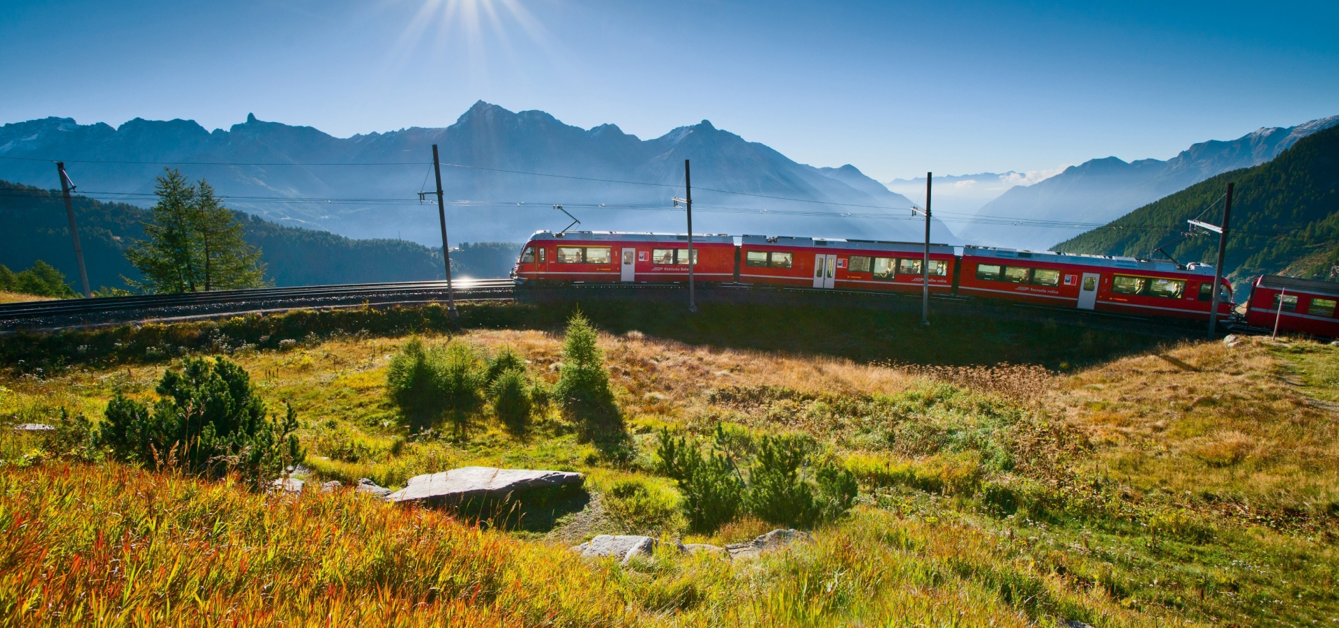 The Bernina Express takes you to the highest point of the journey at Ospizio Bernina, situated at an elevation of 2,253 m (7,392 ft) above sea level. Here, you'll be captivated by the awe-inspiring Alpine panoramas, including the shimmering glaciers and pristine mountain lakes that dot the landscape.