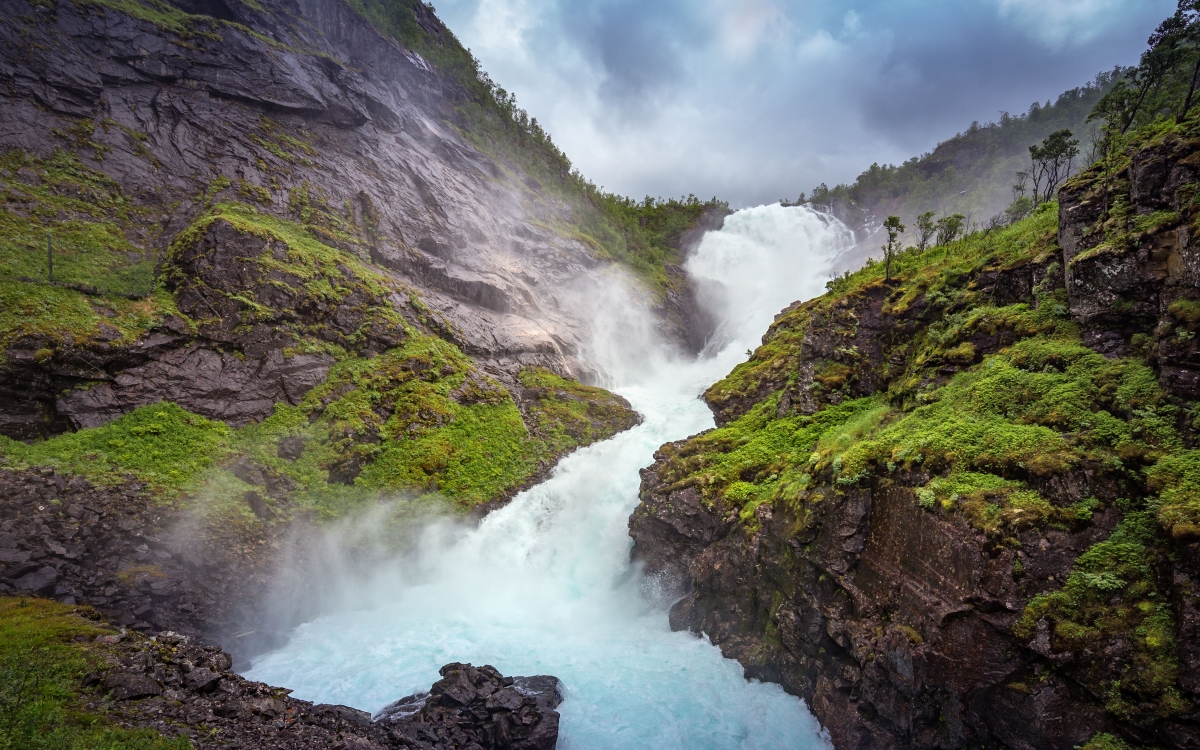 The journey on the Flåm Railway is about 60 minutes, and travels between the high mountain station of Myrdal and the innermost part of the Aurlandsfjord. The scenery changes through the year, but is no less incredible. Pass by mountain farms, waterfalls and rivers carving through deep gorges, and stop at the mighty Kjosfossen Waterfall, which is only accessible on this train journey.