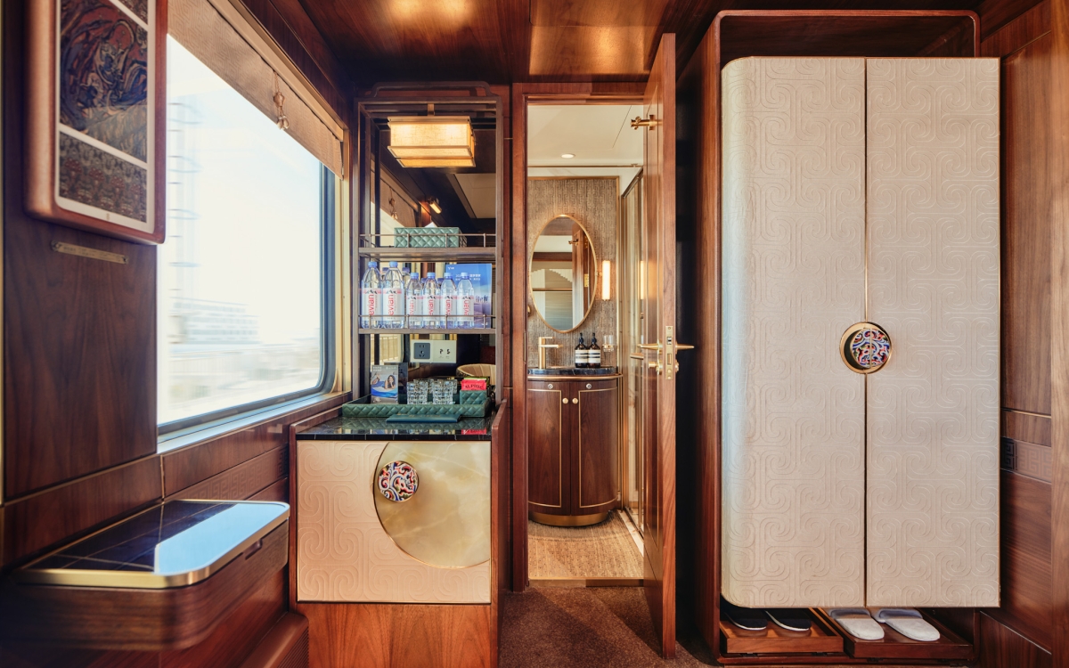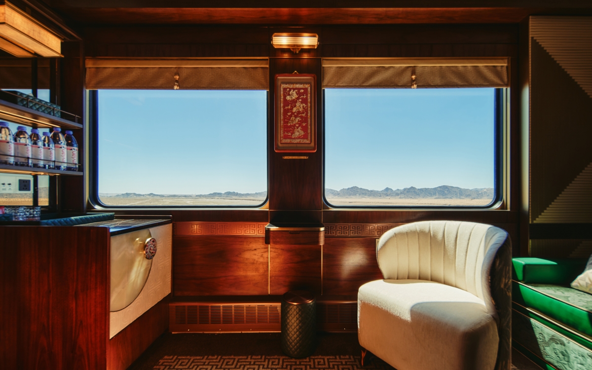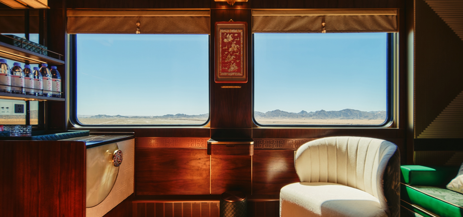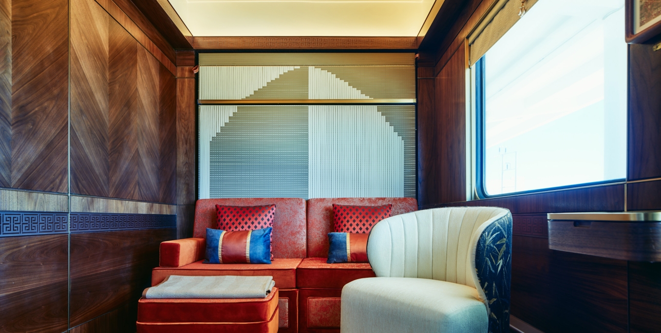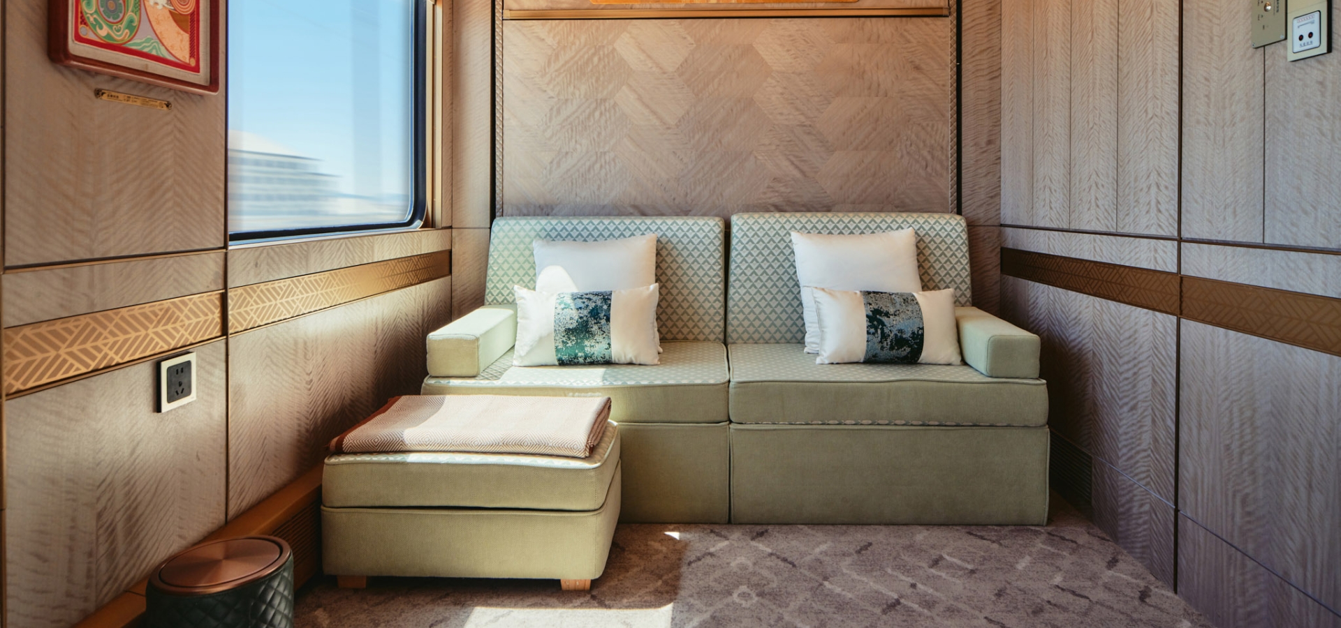 The Superior Cabin on the Golden Eagle Silk Road Express offers 11sqm of thoughtfully designed space, blending comfort and flexibility. By day, unwind in twin sofas and take in the views; by night, the cabin transforms into either twin single beds or a large double bed, creating a refined and restful retreat for one or two guests.