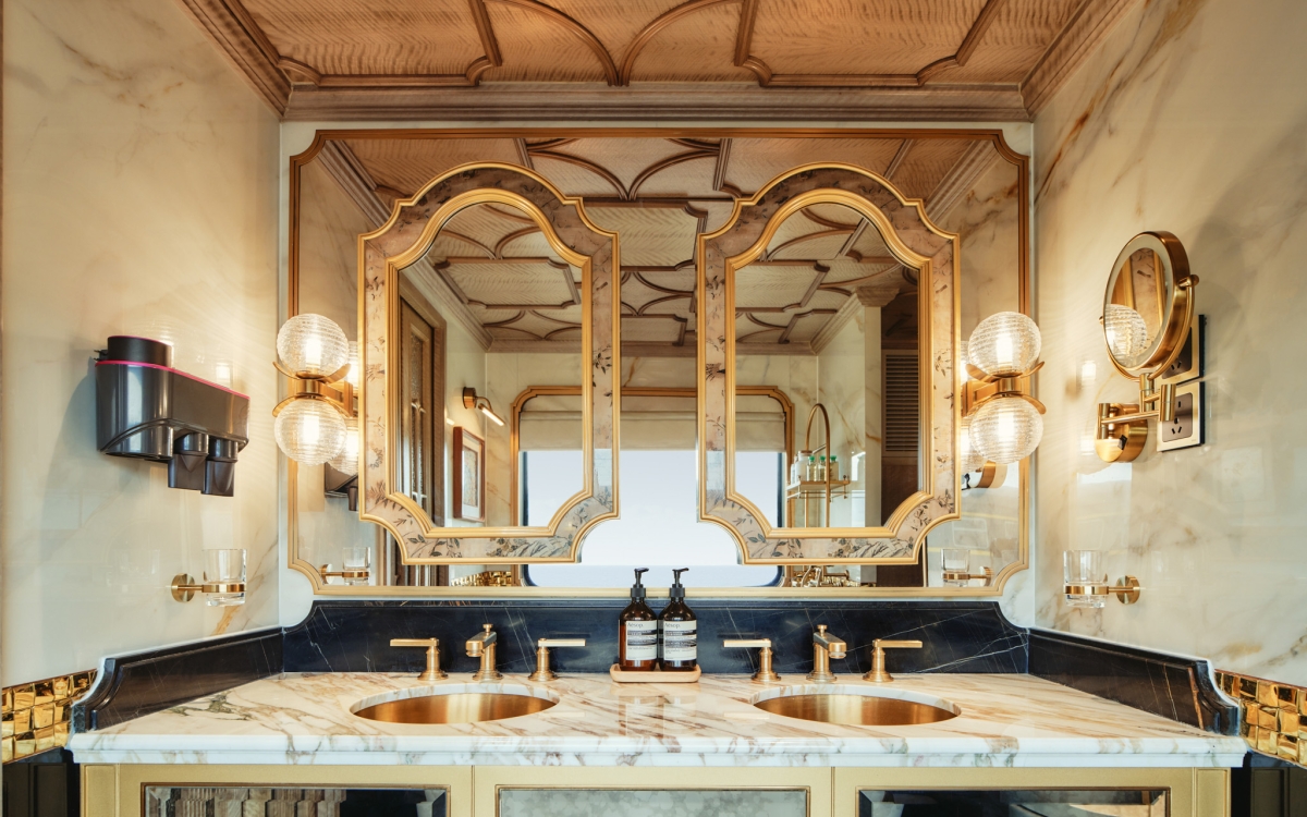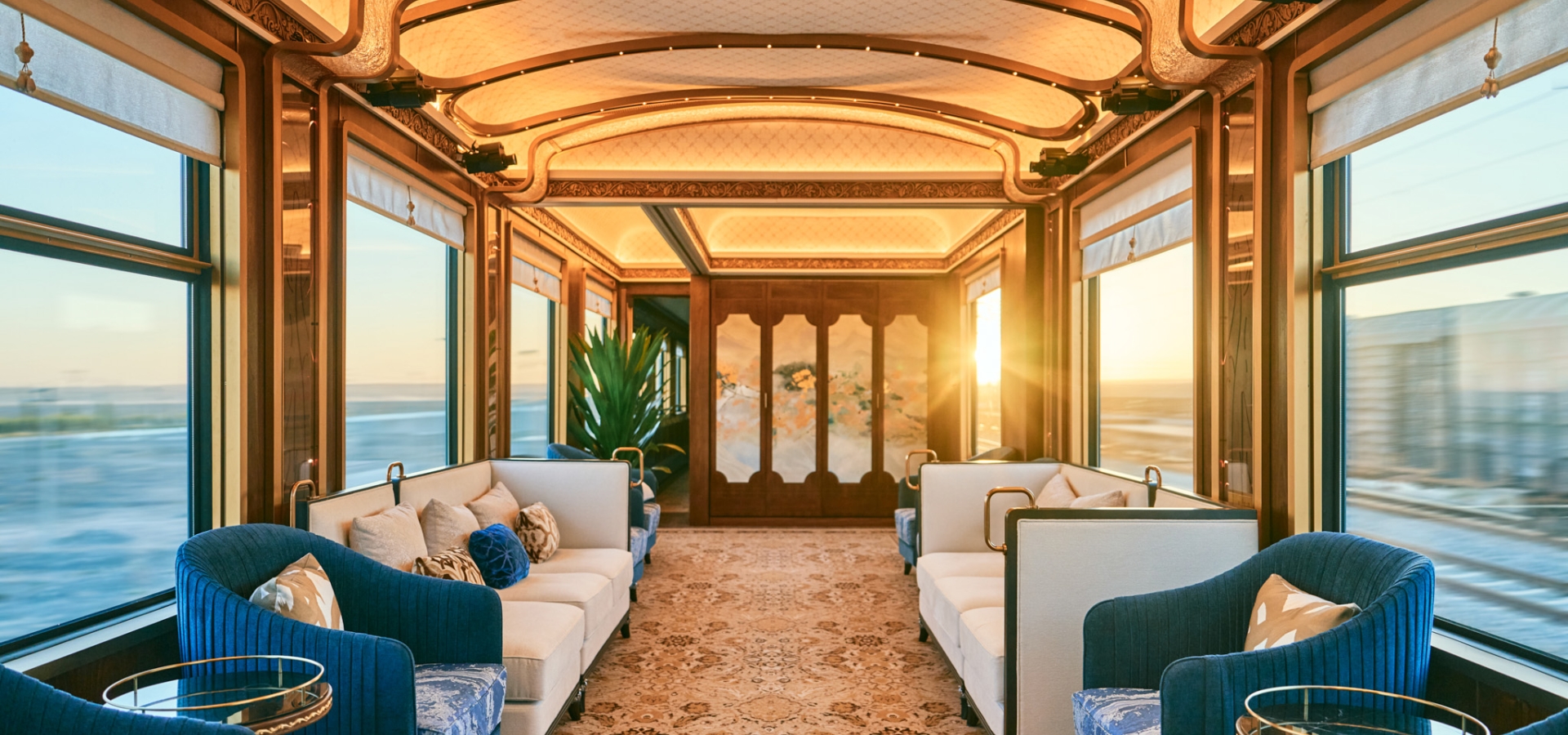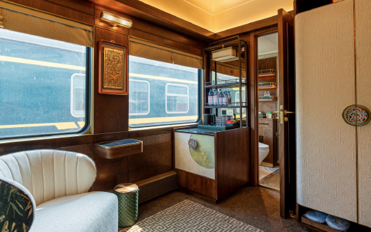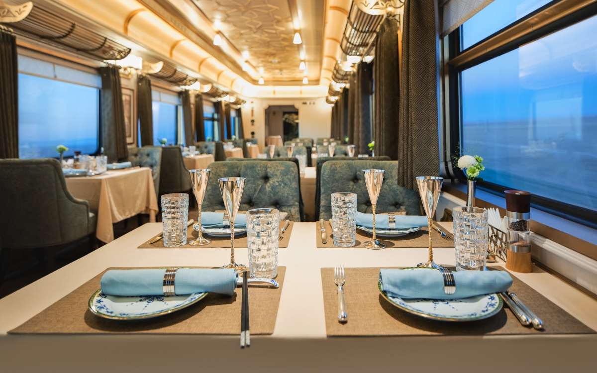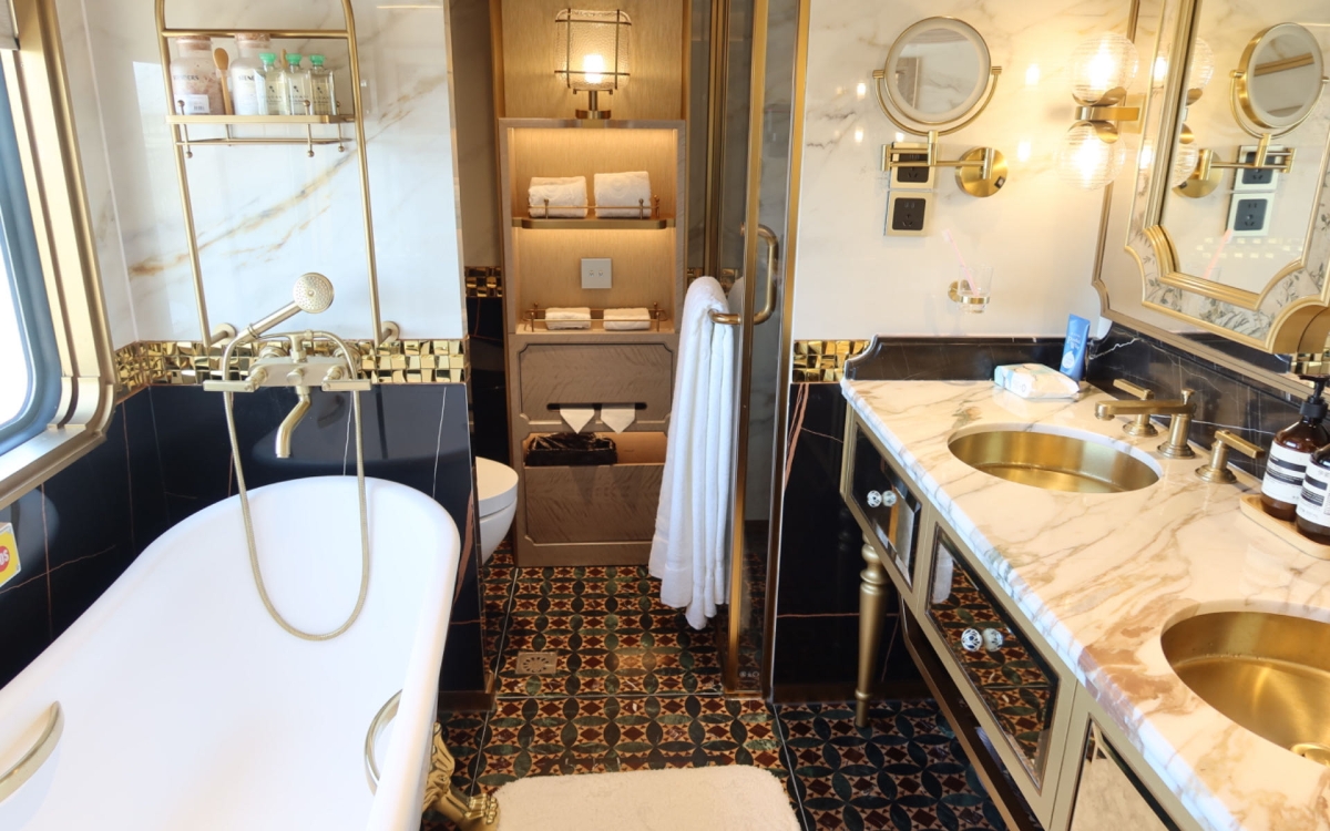 The Superior Cabin on the Golden Eagle Silk Road Express offers 11sqm of thoughtfully designed space, blending comfort and flexibility. By day, unwind in twin sofas and take in the views; by night, the cabin transforms into either twin single beds or a large double bed, creating a refined and restful retreat for one or two guests.