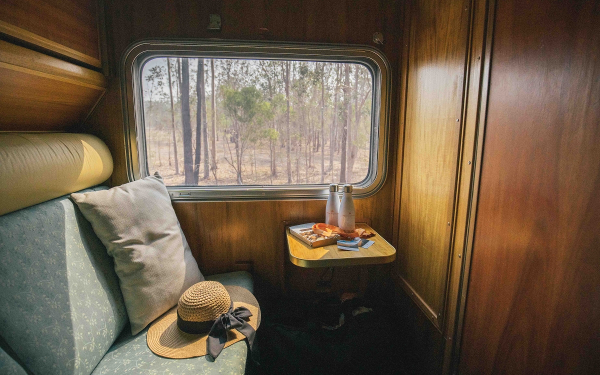 In the evening, the attendant will fold a bed down from behind the seat which will fill the cabin. There are hot showers and toilet facilities at the end of each carriage. Each cabin comes with towels and a complimentary pack of toiletries including soap, toothpaste, and shampoo. Three-course meals are included in the cost of the journey, as well as Australian beer, standard wines, and soft drinks which are also complimentary and can be enjoyed in the “Outback Explorer” lounge.