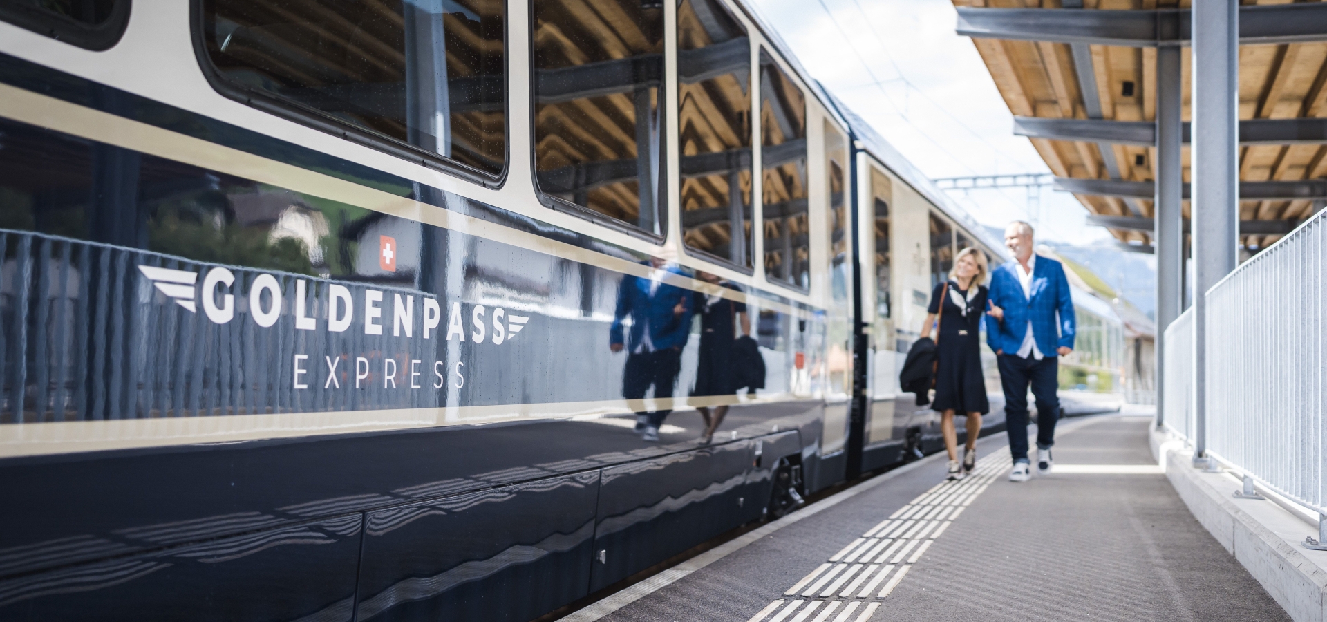 Experience a century-in-the-making rail journey like no other! Travel seamlessly from Montreux to Interlaken aboard the new GoldenPass Express. With its innovative adjustable gauge, this extraordinary train takes you from the picturesque Vaud Riviera through Gstaad and the enchanting Pays-d'Enhaut region, all the way to the majestic Bernese Alps in just three hours. There are three classes of travel – Prestige, First Class and Standard seating are available. The main difference between First Class and Standard is the seating configuration – 2x1 in First Class and 2x2 in Standard. This allows for larger, more comfortable seats, a quieter travel environment and more space for storing luggage.