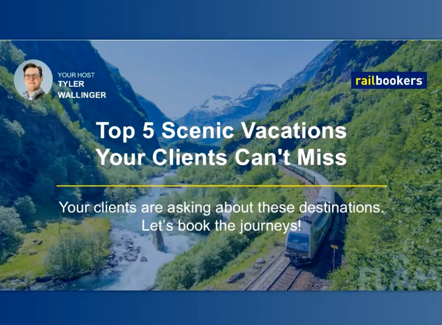 Discover the Top 5 Scenic Rail Holidays that consistently drive bookings 🚆🏔️🌍 In this Railbookers webinar, explore iconic train journeys known for breathtaking landscapes, comfort and immersive experiences. Learn what makes these scenic routes so compelling, how to position them effectively, and why rail travel is the stress-free way to experience unforgettable views.