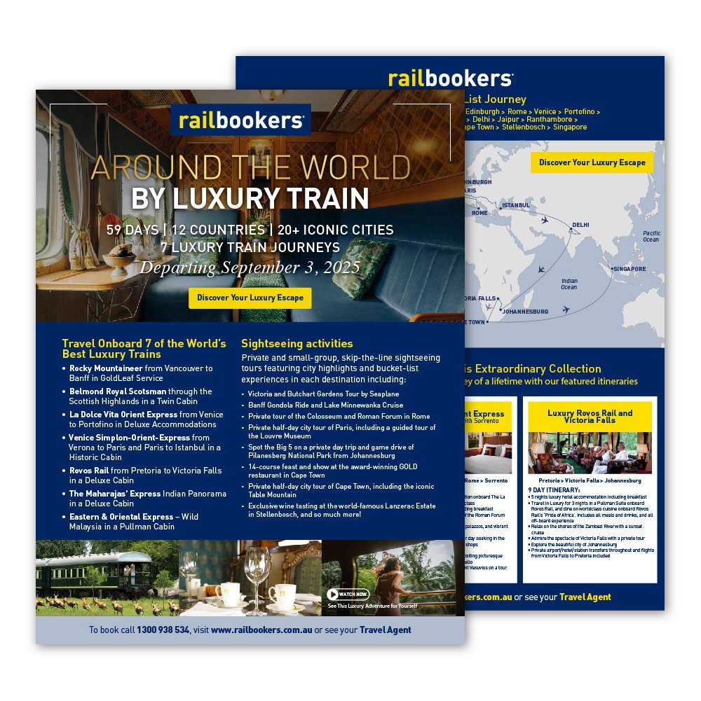 A flyer featuring Railbookers' Signature Rail Journeys.